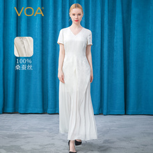 VOA提花真丝V领短袖拼接乔其丝绸裙摆白色时尚名媛假两件连衣长裙¥1699