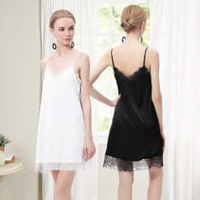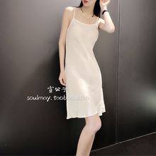 桑蚕丝绸白色海边吊带睡衣连衣裙外穿中长款内搭打底下摆蕾丝衬裙¥119
