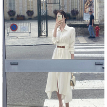 MAJE YFMEX法式纯色腰带小设计长裙小众长袖高级感白色丝绸连衣裙¥1588