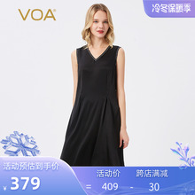 VOA缎面弹力黑色丝绸V字领白色拱针工艺宽松腰无袖桑蚕丝连衣裙¥409