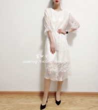 重工立体真丝冠乐绉白色连衣裙女夏季韩版中长款桑蚕丝仙女裙子¥419.9