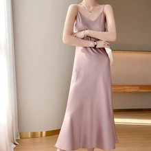 桑蚕丝吊带连衣裙女夏内搭打底黑白色醋酸缎面真丝绸中长款v领¥58.8