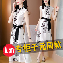 薄款真丝无袖连衣裙女夏季收腰高端优雅气质白色丝绸碎花中长裙子¥79